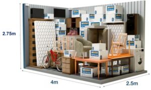 Στην αποθήκη αυτή είναι δυνατή η εναποθήκευση των επίπλων ενός διαμερίσματος τριών υπνοδωματίων (τεσσάρι). Ο εν λόγω αποθηκευτικός χώρος είναι επίσης ιδανικός για τη φύλαξη των εμπορευμάτων ή του εξοπλισμού μίας μεσαίας επιχείρησης. Οι διαστάσεις στην παρακάτω φωτογραφία είναι ενδεικτικές.